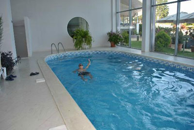 Kostenfrei Benutzung von Hallenbad, Pool, Liegen und Schirmen am Pool.